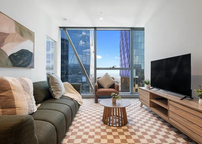 Das 1-Zimmer-Stunning City And Bay Views Apt With Pool & Gym! bietet auf einer Fläche von 61 m^2 ein Hallenbad für einen angenehmen Aufenthalt. Staatsbibliothek von Victoria ist rund 20 Minuten zu Fuß vom Apartment entfernt, während Kongresszentrum Melbourne Convention and Exhibition Centre etwa 25 Minuten zu Fuß von hier entfernt ist.
